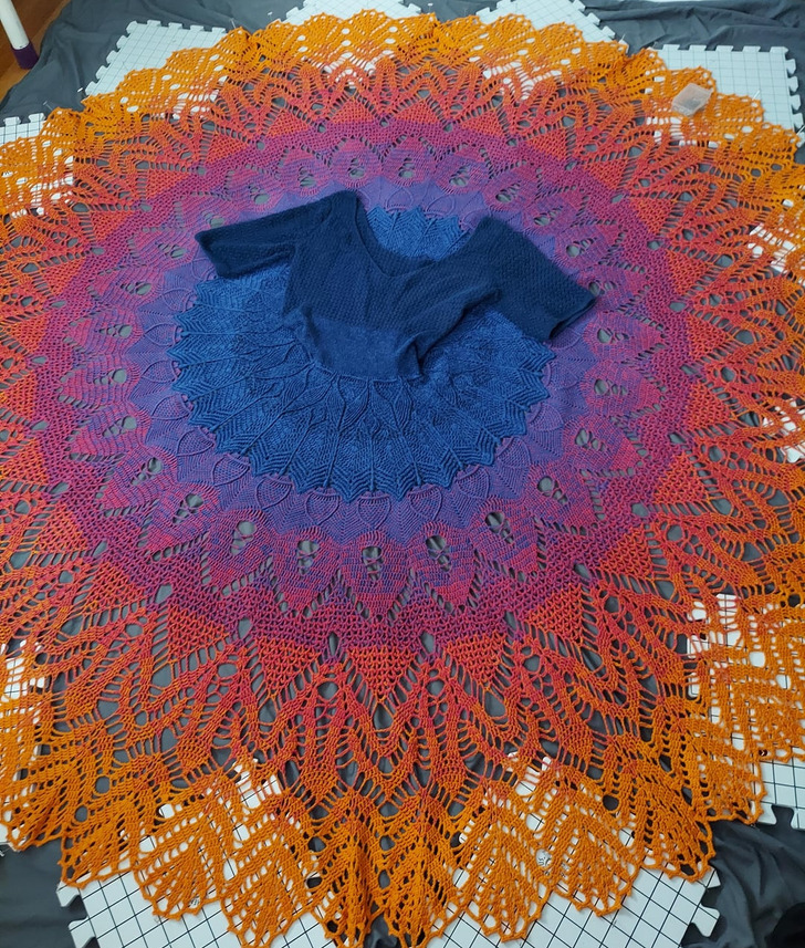 «Я связала это платье в цветах заката — два года назад. Я часто его надеваю, но замучилась отпаривать, потому что юбка занимает кучу места на полу комнаты»