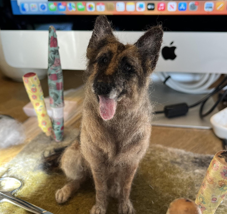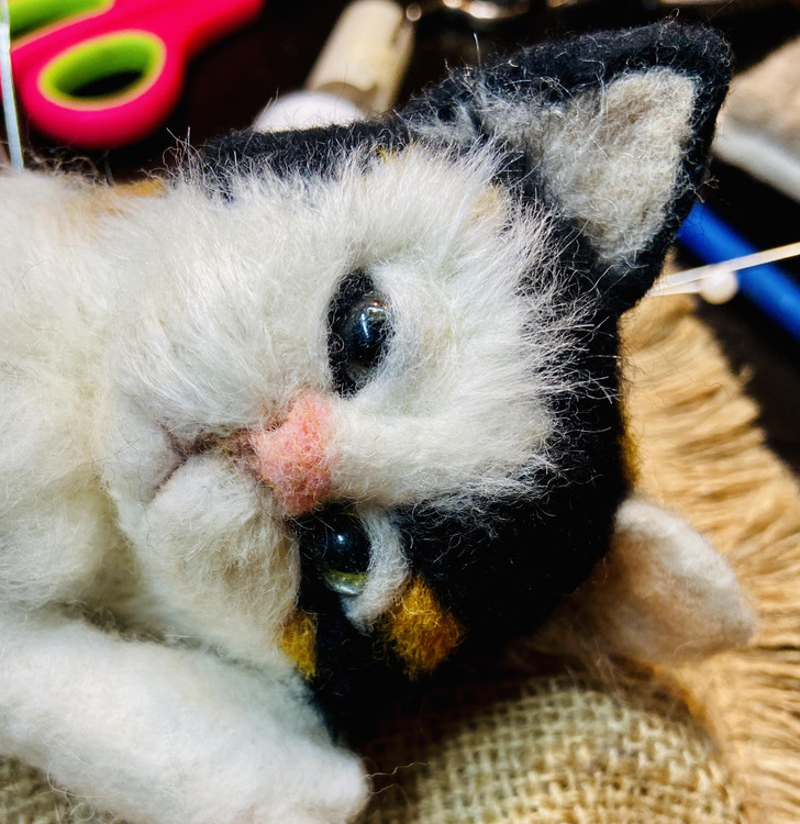 «Мой трехцветный котенок в натуральную величину. Впервые работала с таким количеством шерсти. Еще практиковаться и практиковаться...»