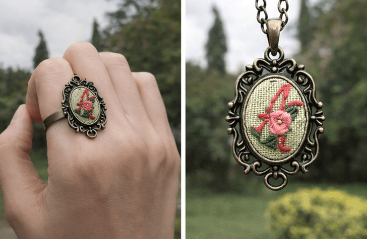 «Взгляните на вышитые вручную колечки и подвески, которые я сделала»