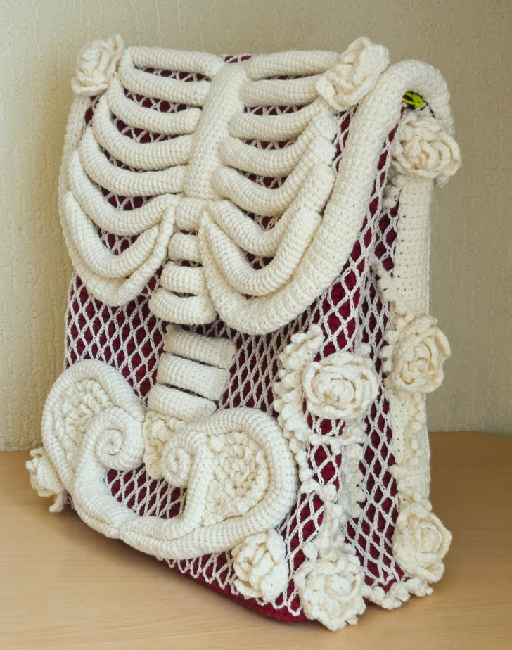 Обалденно! Я так понимаю референс был взят с ии-картинки (пусть там и не рюкзак а свитер), но тут мастерица взяла и связала в реальности 🔥Крутота одним словом..а картинку прикреплю