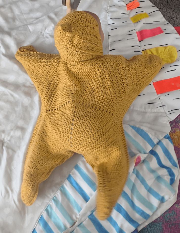 «Связала это для малышки моей лучшей подруги. Божечки, вид сзади просто очаровывает»