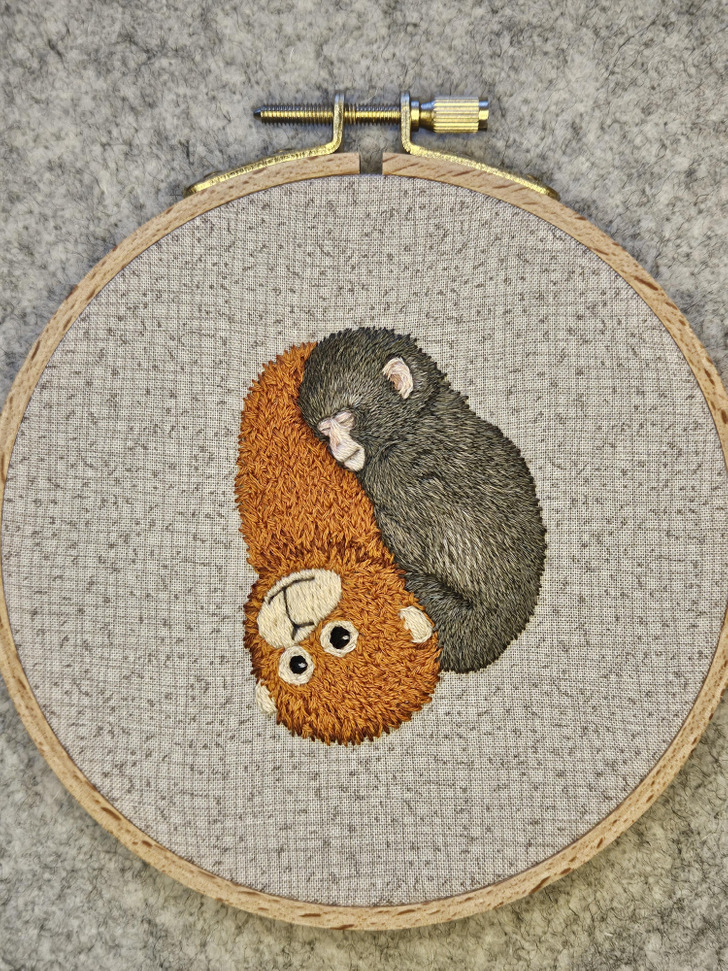 «Вышила картинку с обезьянкой Панч. Так рада, что у меня нашлось на это время»