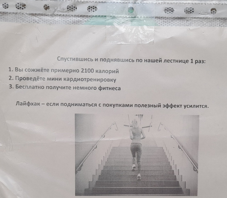 «Объявление на входе в магазин с крутой лестницей»