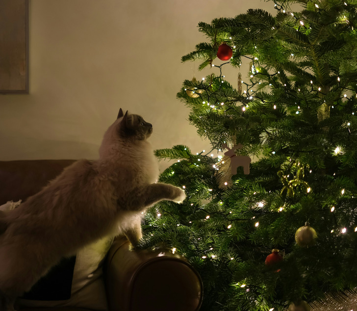 - Мой кот любил забираться на нашу искусственную елку. Он лазил по веткам, и металлические спицы, которые их удерживали, ломались. В конце концов мы устали от этого и положили под елку фольгу — слышали, что у некоторых это срабатывает. И действительно: кот отказался заходить под елку и, соответственно, забираться на нее. Поэтому он придумал другой способ. Маленький негодяй залез на кошачью башню и устроился на верхушке, готовый к прыжку. Мы сидели на диване и смотрели, как он прыгнул в воздух и приземлился на елку. Вся елка рухнула, потому что одна из ножек сломалась. Кот вылез из обломков с взъерошенной шерстью и оглянулся с ухмылкой, словно говоря: