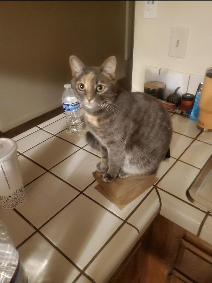 «Она думает, что каждый плоский предмет на столешнице — это одяло для сидения»