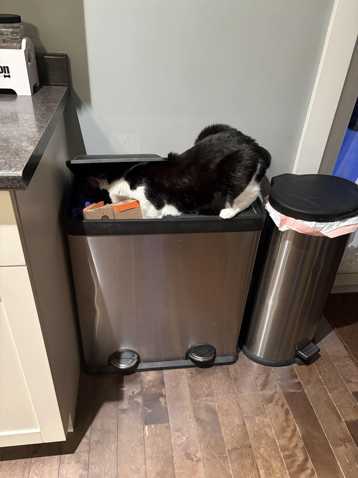 • Кошечка ищет любой пластик, который не соответствует городским нормам сбора отходов. © GSDer_RIP_Good_Girl / Reddit