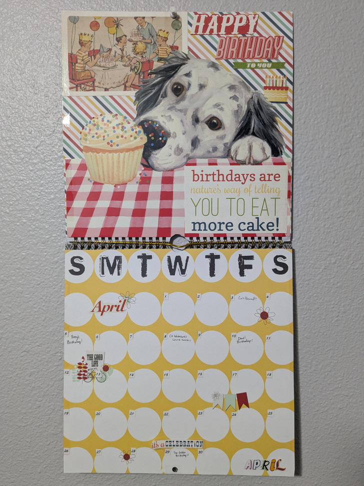«В этом году я сделала календарь сама, а не покупала. Использовала старые календари, вырезки из журналов, наклейки, скотч и многое другое»