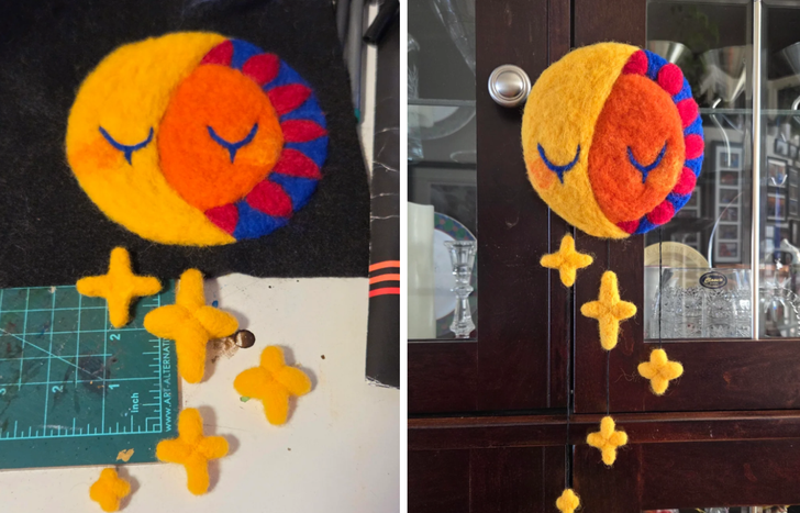 «Сделала это в подарок подруге на день рождения. Она обожает всякие луны, солнышка и звезды, а ее кошек тоже зовут Луна и Сол, поэтому я подумала, что это будет идеальный подарок».