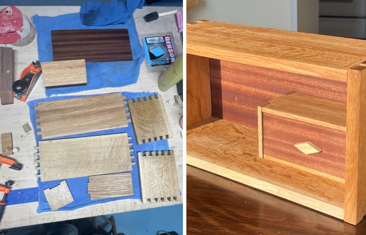 «Нарисовал проект комода, но опыта изготовления крупных предметов мебели у меня не было, и я попросил совета у людей в сети. Вот, что благодаря этому получилось»