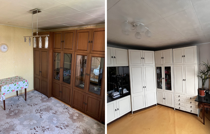 Эти «стенки» всегда вызывают наплыв ностальгии и ассоциируются с детством, поэтому всегда жаль их выбрасывать и менять на что-то новое. А вот такое удачное обновление очень обрадовало пользователей в сети. Одна девушка даже отметила: «Ни за что бы не сказала, что это старые шкафы!. Выглядят очень современно».