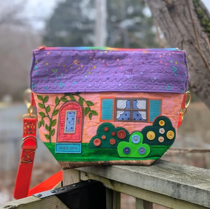 Эту сумку в форме дома я сделала для своего Секретного Санты на работе. Осенью прошлого года я такую же меньшего размера как эксперимент. А моя коллега увидела пост с ее фотографией и просто влюбилась, так что сделать еще одну было для меня очевидным решением.