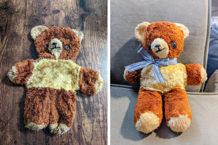 6. «Отмыла плюшевого мишку моей мамы. Косолапому больше 60 лет»