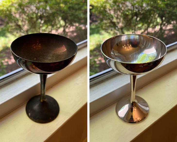 16. Старинный серебряный кубок до и после полировки