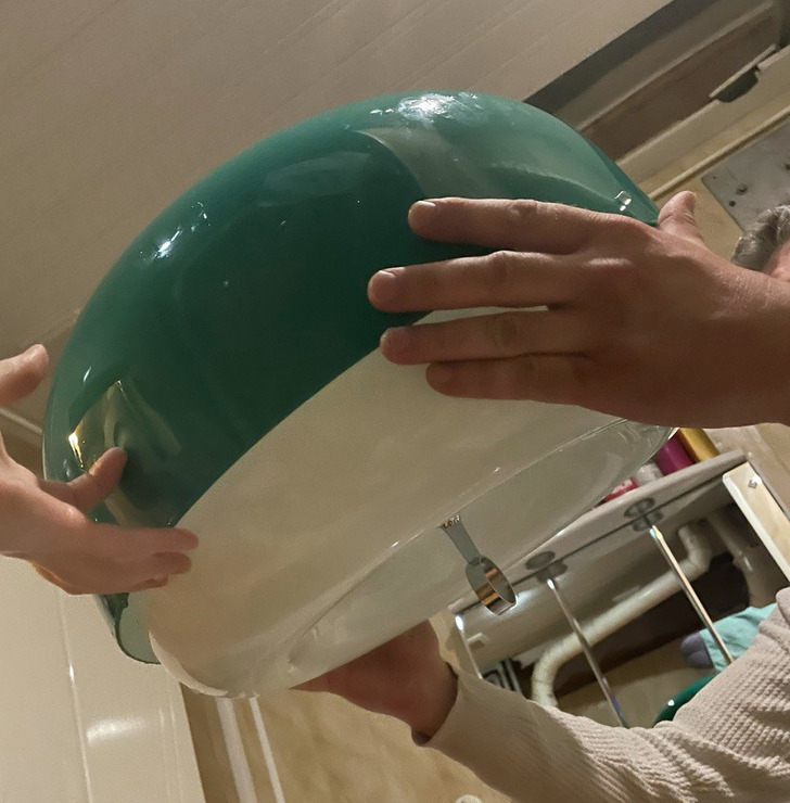Но что-то в них было странное: пластик качественный, формы изящные. Рука не поднялась выбросить, поэтому мы их помыли и отправили в гараж — авось пригодятся. Шло время. Однажды я наткнулась на объявление о продаже винтажной люстры Meblo. И тут меня осенило: эти «тазики» — точь-в-точь как части плафона этой люстры!