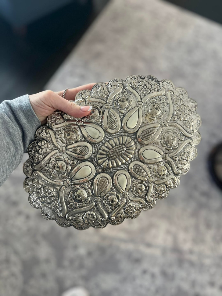 «Схватила это зеркало прямо с тележки. Женщина, расставляющая товары, сказала: „Это настоящее серебро. Я, наверное, занизила цену, но цель — продать его, верно?“ Я бы ее расцеловала!»