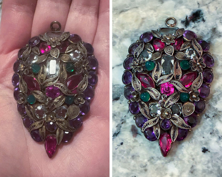 «Купила этот кулон в винтажном магазине, чем-то зацепил меня. А сегодня я его почистила и — мама дорогая!»
