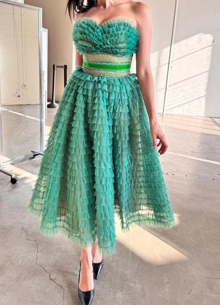 Это платье из шелка и тюля — яркий образец стиля вне времени, хоть оно и было сшито полвека назад. В комментариях автору советуют подобрать к нему розовые или ярко-зеленые туфли!