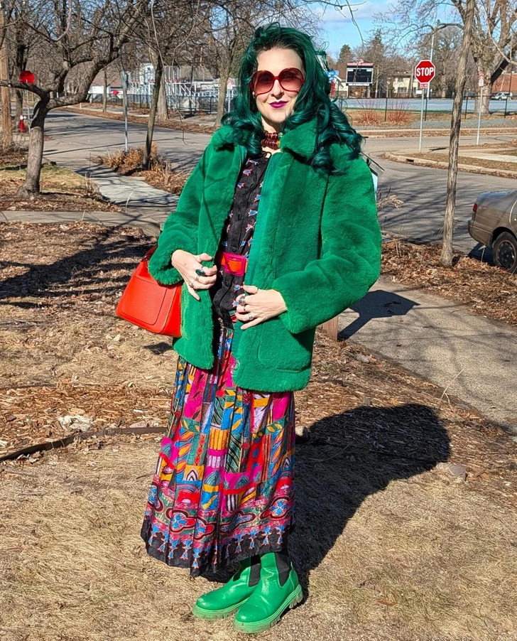 Яркие волосы задали тон всему образу, и посмотрите, насколько гармонично получилось. Автор поста пошутила, что люди редко помнят ее имя и упоминают ее не иначе как «ну, та твоя подруга с зелеными волосами». А вдохновил женщину на выбор собственного стиля ее попугай!