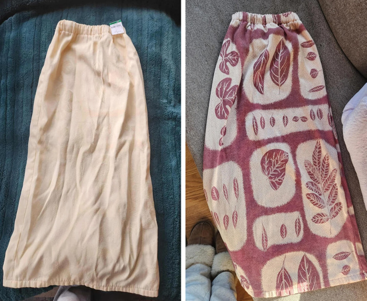 «Приготовьтесь ахнуть. Я покрасила юбку, которую купила в секонде, и вот что на ней проявилось»