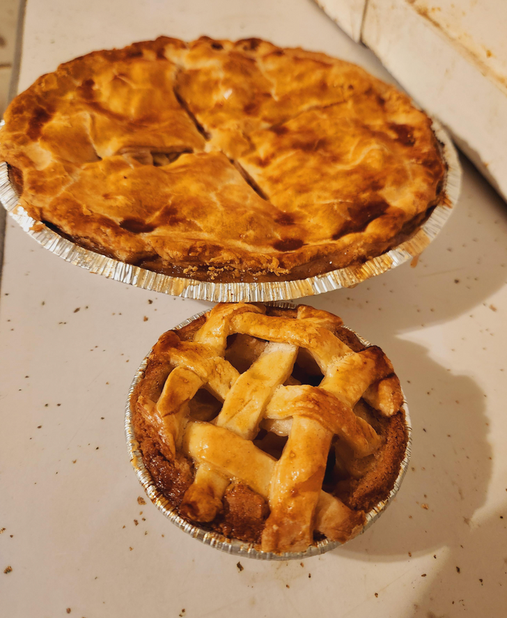 «Мы с парнем расстались, но пока не разъехались. Я приготовила два больших пирога и два мелких. А он съел 1,5 большого пирога и 1 маленький. Жесть»