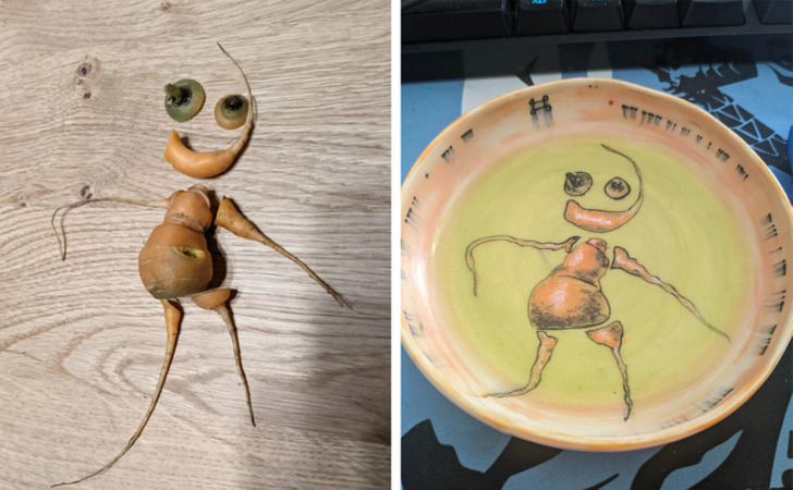 «Когда готовил, отправил своей девушке фотку человечка-морковки. А через несколько недель ее мама подарила мне это»