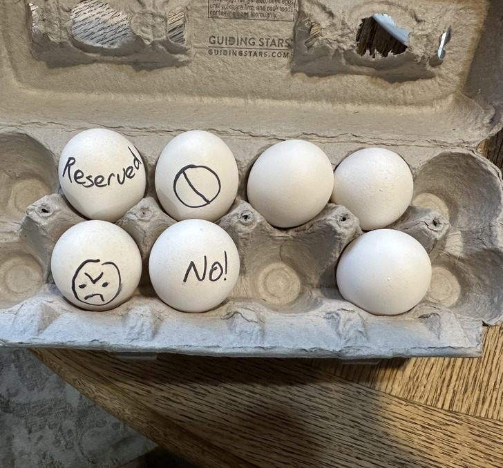 Надписи на яйцах: «Занято», «Нет!»