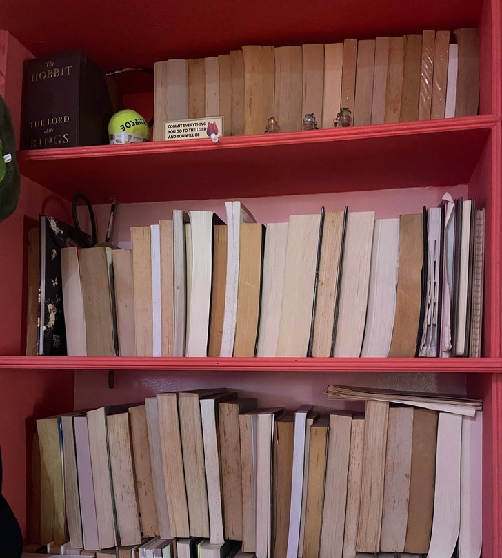 «Моя сестра решила навести порядок на моей книжной полке и сделала вот это... Мои глаза!»