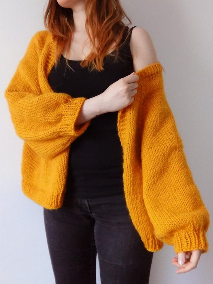 «Только что закончила вязать свой кардиган в стиле oversize и в цвете, который я раньше очень боялась носить»