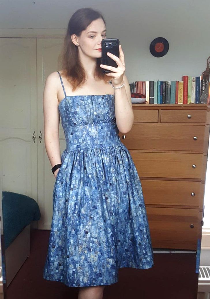 «Я была просто вне себя от радости, когда увидела стеганый хлопок с принтом в духе картин Густава Климта. Я сшила из него свое первое платье с карманами»