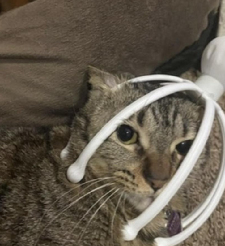 «Моя кошка обожает засовывать голову в массажер для головы»