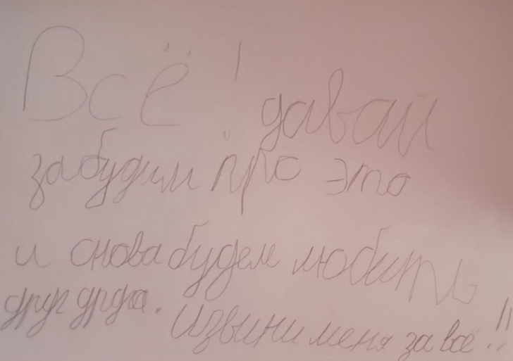 «У меня есть семилетняя сестра и иногда кажется, что она мудрее всех знакомых взрослых. Вот такую записку она оставила маме на утро после ссоры»