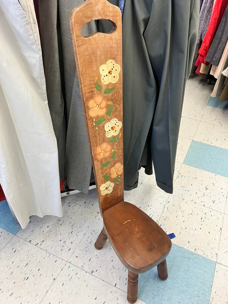 «Нашла этот чудной стул в местном секонд-хенде. Он деревянный, узкий, а спинка очень длинная. Есть идеи, что это такое?»