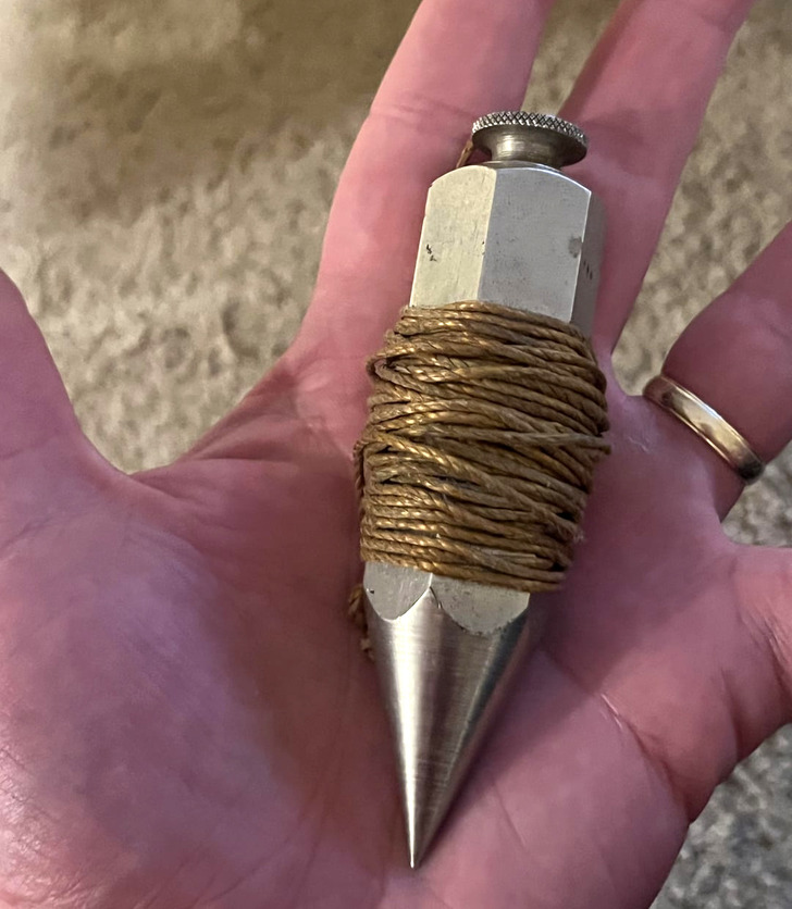 - Отвес, он образует идеально вертикальную линию. Его используют для проверки вертикальности стен, углов и колонн. © RodCard / Reddit