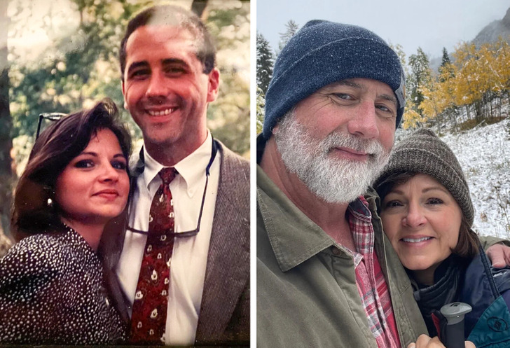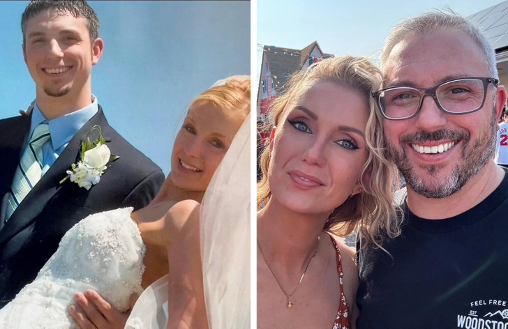 «Отпраздновали нашу 17-ю годовщину свадьбы. Это мы в 18 лет и в 36 лет»