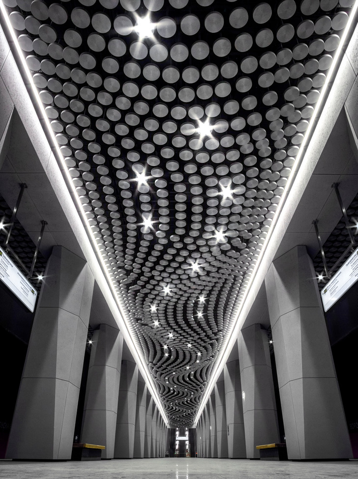 У нас есть метро Петровщина, там тоже потолок в светильниках, белых и голубых. Очень круто.