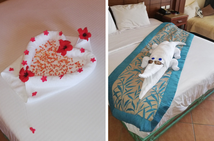Мы в Турции отдыхали, а дочь с собой притащила своих любимых игрушечных енота и зайца, она только с ними спала. И во время уборки их постоянно выкладывали так, как будто они живые, то они в ящике стола застряли, то на подушках спали, умора