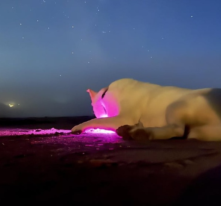 «Просто моя собака на пляже со своим светящимся ошейником»
