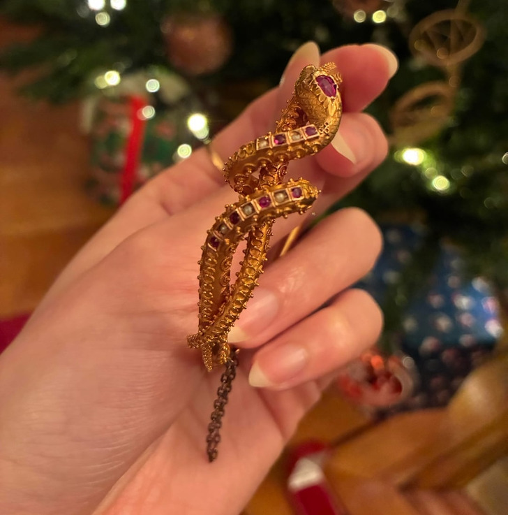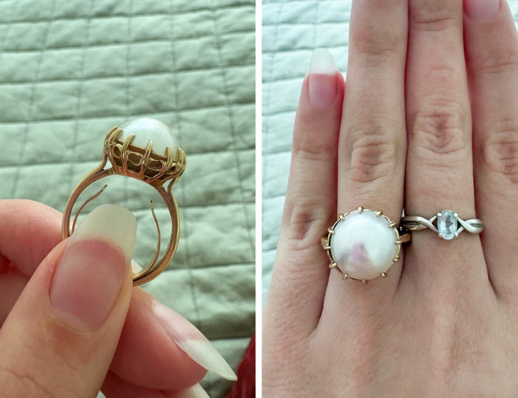 «У моей бабули были шуры-муры с боссом. Тот часто заглядывал к нам на семейные праздники. Когда я была маленькой, он внезапно подарил мне это кольцо, потому что я всегда была без ума от жемчуга»