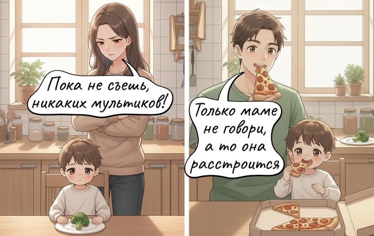 А потом папа "хороший", а у матери никого авторитета. И правда, зачем её слушаться, если папа всё равно всё разрешит? Я своему прямо сейчас говорю, что надо заранее договориться по принципиальным вопросам и не подрывать авторитет друг друга в глазах ребёнка.