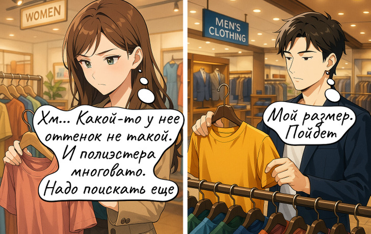 Для многих женщин поход по магазинам — это марафон на целый день, да еще и с элементами науки. Для мужчины — спринт на две минуты