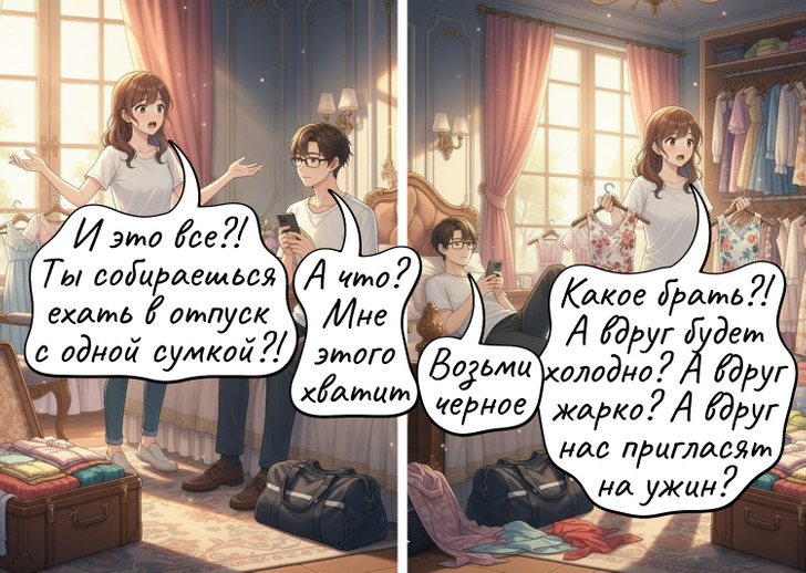 Сборы в отпуск у женщин и мужчин кардинально отличаются