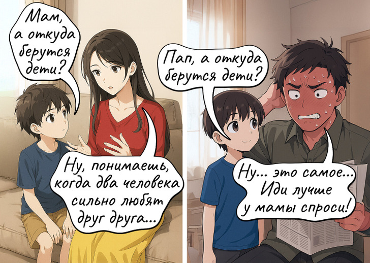На каверзные вопросы у мамы всегда есть готовые ответы. Папа тоже не подводит — правда, делает это по-своему