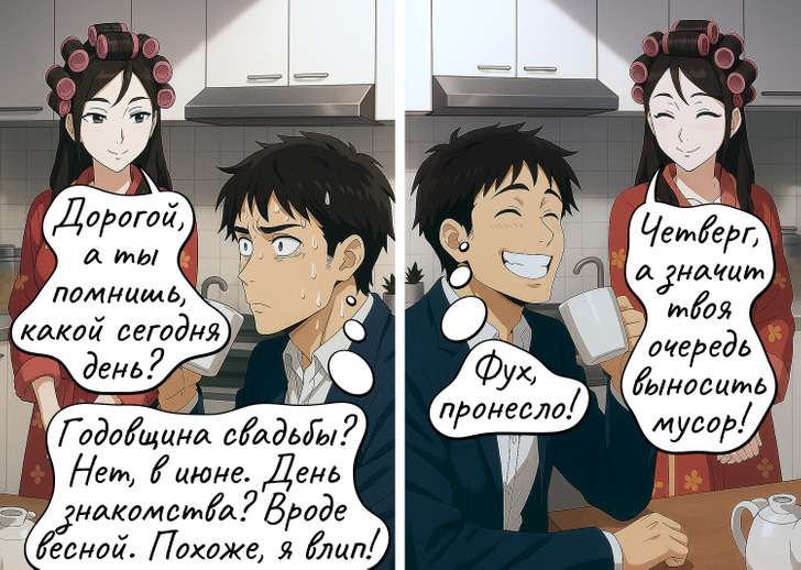 «Мужчины с Марса, женщины с Венеры» — эта фраза уже стала классикой, но она по-прежнему актуальна. Мы действительно порой по-разному смотрим на одни и те же вещи: от выбора цвета стен до сборов в отпуск. Он ищет логику, она — эмоции. Он хочет решить, она — обсудить. Мы подобрали 19 комиксов, которые с юмором показывают, как выглядят столкновения двух совершенно разных миров.