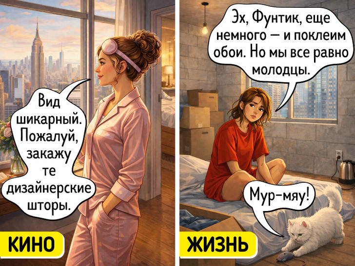 19 комиксов с ароматом попкорна, которые честно показывают, как наша жизнь далека от любимого кино