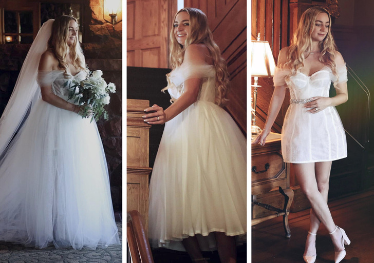 «Платье „3 в 1“: для церемонии, первого танца и празднества. Сшила для своей лучшей подруги. Она была так счастлива!»