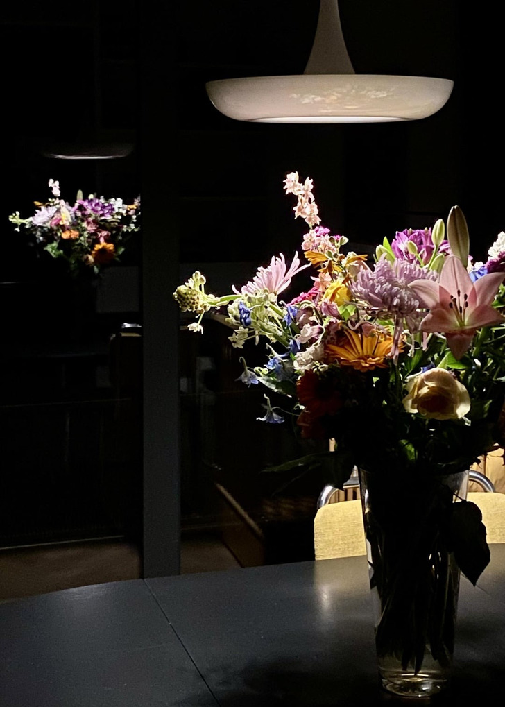 «Цветочная ваза и ее отражение в окне»