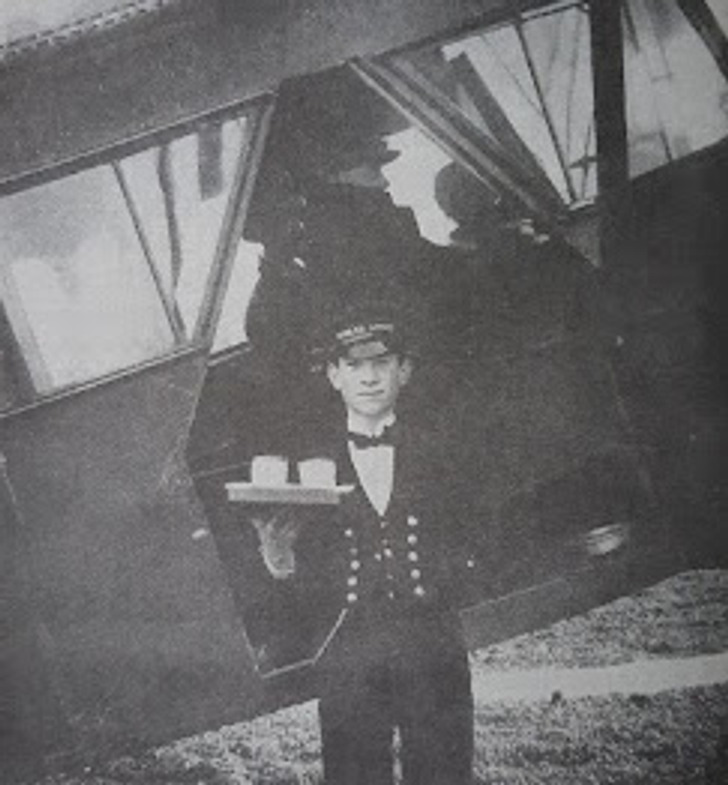 Изначально бортпроводниками работали только мужчины. Вот, например, в 1920-м стюард Джек Сандерсон предлагает пассажирам сок