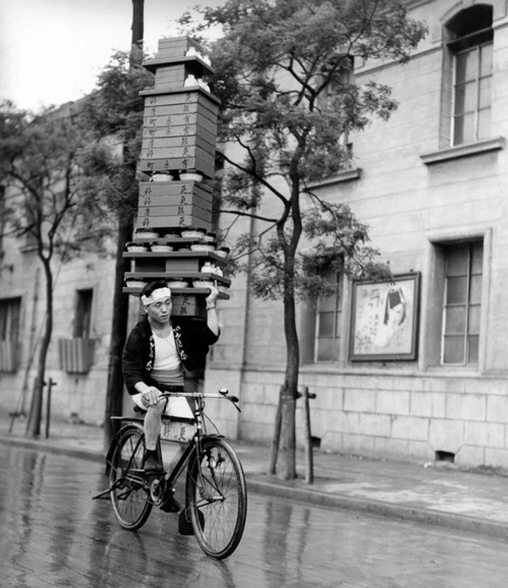 Судя по всему, доставку любили во все времена. Курьер из Токио с горой лапши буквально на своем плече это подтверждает