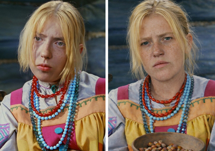 У Ляпиной те самые бездонные глаза и трогательная, почти детская чистота. Она умеет играть героинь с хрупкой внешностью, но сильным стержнем внутри. Мы считаем, что это точное попадание в образ кроткой падчерицы, которая и носки свяжет, и, если надо, посохом Морозко воспользуется.