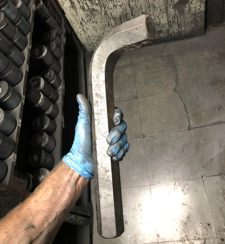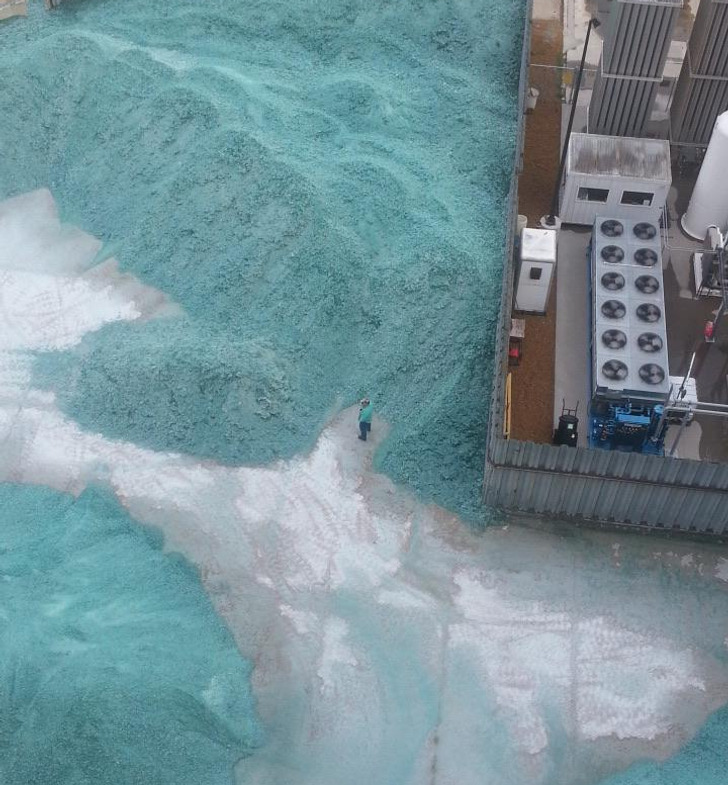 «Папа работал на заводе по изготовлению лобовых стекол для машин. Вот излишки, которые выдувает во время производства. Глядя на стоящего в центре человека, можно прикинуть масштаб»